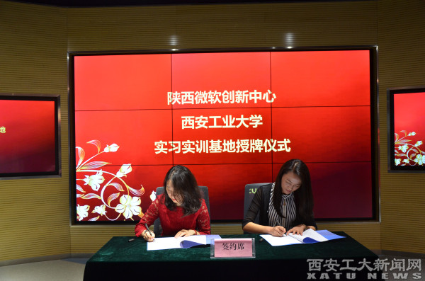 (本網(wǎng)訊)近日,我校與陜西微軟創(chuàng)新中心簽署“本科學(xué)生教學(xué)實(shí)習(xí)基地建設(shè)合作協(xié)議”。陜西微軟創(chuàng)新中心總經(jīng)理助理吳靜璇、我校教務(wù)處副處長閆莉?yàn)椤皩?shí)習(xí)實(shí)訓(xùn)基地”揭牌。
