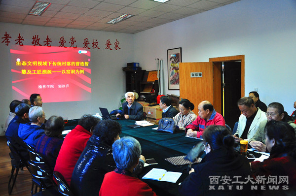 (本網訊)11月9日,由西安工大離退休黨委(離退處)與人文學院合辦的《做好教育事業精神文化引領——生態文明視閾下傳統村落的營造智慧及工匠溯源(以窯洞為例)》學術報告在金花校區舉辦。報告由陜西老教授協會理事,中國民俗學會五屆、六屆理事,陜西民俗學會三屆副會長,榆林學院中文系教授,“榆林好人——最美老人”郭冰廬教授主講。