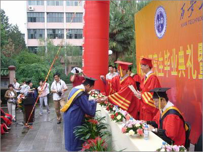 5月31日,我校2007屆碩士研究生畢業(yè)典禮在金花校區(qū)圖書館前隆重舉行。參加典禮的有校黨委書記賽云秀、校長(zhǎng)劉江南、副書記簡(jiǎn)林根、副校長(zhǎng)張君安、劉衛(wèi)國(guó)、校長(zhǎng)助理陳樺以及部分導(dǎo)師和全體研究生。典禮由校長(zhǎng)助理研究生部主任陳樺教授主持。首先,劉衛(wèi)國(guó)副校長(zhǎng)代表學(xué)校學(xué)位委員會(huì)宣讀了2007屆授予碩士學(xué)位研究生名單,接著由劉江南校長(zhǎng)、劉衛(wèi)國(guó)副校長(zhǎng)共同為畢業(yè)研究生們頒發(fā)了學(xué)位證書。今年,我校共有188名同學(xué)順利的通過了論文答辯,獲得了碩士學(xué)位。經(jīng)過校學(xué)位委員會(huì)的評(píng)審,產(chǎn)生優(yōu)秀碩士論文21篇。張君安副校長(zhǎng)宣讀了優(yōu)秀碩士論文名單。校領(lǐng)導(dǎo)共同為優(yōu)秀碩士論文獲得者頒發(fā)了榮譽(yù)證書。隨后導(dǎo)師代表容曉峰副教授、學(xué)生家長(zhǎng)代表郭安江、畢業(yè)生代表?xiàng)盍嵬瑢W(xué)分別做了精彩的發(fā)言。最后,校長(zhǎng)劉江南教授進(jìn)行了總結(jié)發(fā)言,他對(duì)同學(xué)們過去三年的表現(xiàn)以及取得的成績(jī)給予了充分的肯定,并給即將畢業(yè)的研究生提出了新的要求和期望。