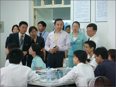 匯報會之后,在我院領導的陪同下,專家們參觀了學院資料室、可視化認知中心、商務談判實驗室、ERP沙盤實驗室、會計手工實驗室及科研流動站。專家饒有興趣地觀看了我院史璇老師演示的工商注冊模擬流程和唐建強老師演示的外貿實務模擬流程;在ERP沙盤實驗室,專家現場觀摩了學生的ERP模擬實驗。
