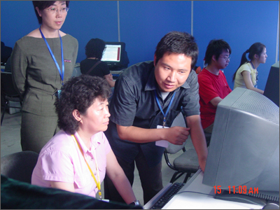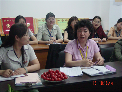 之后,李建平教授參觀了外語系資料室、外語廣播電臺,外語網絡教學信息與實踐中心、外語系辦公室、檔案室和教研室。在參觀過程中,李教授對外語廣播電臺和外語網絡教學信息與實踐產生了濃厚的興趣。她詳細詢問了外語廣播電臺和外語教學信息與實踐的運作情況,并親自操作外語系網絡教學信息操作平臺,察看了外語教學信息軟件。