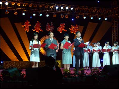 繽紛的燈光變幻出流動的彩虹,一張張笑臉展現出青春的絢麗,學子們用最美的歌聲和舞姿向西工的未來致意。動人的旋律,奔涌著幾代西工人團結奮斗的豪情壯志;歡快的舞步,飛揚著所有西工人共同發展的美好憧憬。5月11日晚,“青春的承諾——西安工業大學‘五四’科技文化藝術節文藝晚會”在未央校區經緯廣場隆重舉行。校領導簡林根、丁養斌、張君安、陳俊斌、徐雪芹等與我校一萬多名師生一同觀看了晚會。