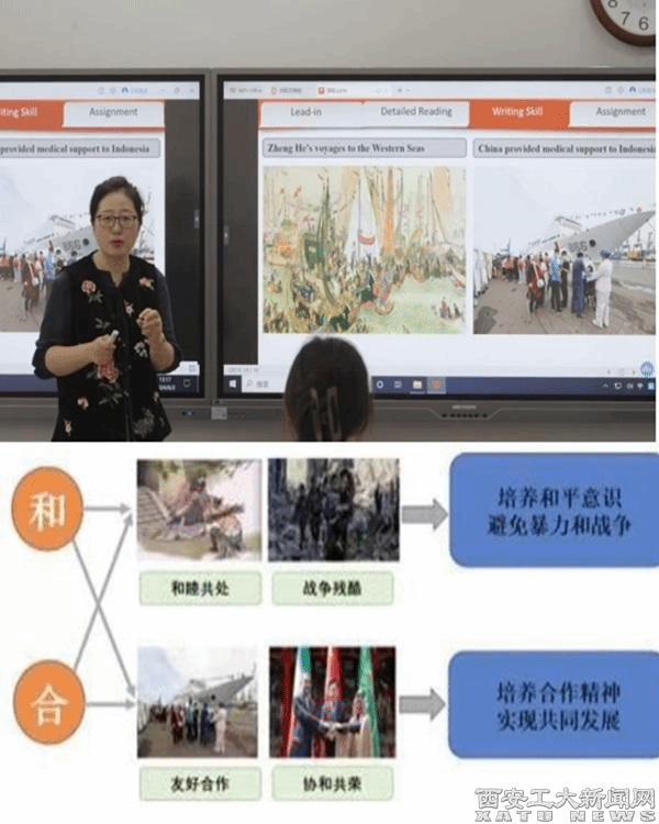 劉蓓、張琴與付佳媚組成的教師團隊匠心獨運地將社會主義核心價值觀潤物無聲地融入英文寫作技巧的教學之中,例如在講授《War and Peace》寫作技巧時,不僅引導學生深入剖析作品,理解和諧社會的深刻內涵與和平解決國際爭端的不可或缺性,還借此契機,弘揚中華民族優秀傳統文化,激發學生對中華文化根源的深刻認同與自豪感。