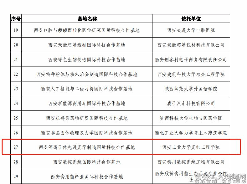 (本網訊)近日,西安市科技局印發了《西安市科學技術局關于認定2024年度市級重點實驗室的通知》(市科發〔2024〕80號)、《關于認定第五批西安市國際科技合作基地的通知》(市科發〔2024〕87號)文件,我校基礎學院馮孝周教授牽頭申報的“西安市信息光學與智能計算軍民共用技術重點實驗室”、光電工程學院戴中華教授牽頭申報的“西安市智能材料與傳感器件重點實驗室”獲批2024年度西安市重點實驗室,光電工程學院惠迎雪教授牽頭申報的“西安等離子體先進光學制造國際科技合作基地”、機電工程學院董皓教授牽頭申報的“西安精密傳動與特種加工國際科技合作基地”獲批2024年度西安市國際科技合作基地。