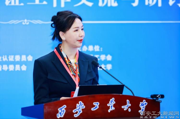 之后,我校副校長閆莉教授,結合我校專業認證工作開展情況,以《以專業認證為抓手,貫徹OBE理念,提升人才培養質量——西安工業大學的探索與實踐》為題,介紹了學校在本科專業人才培養質量方面的先進理念、實踐成果和寶貴經驗。