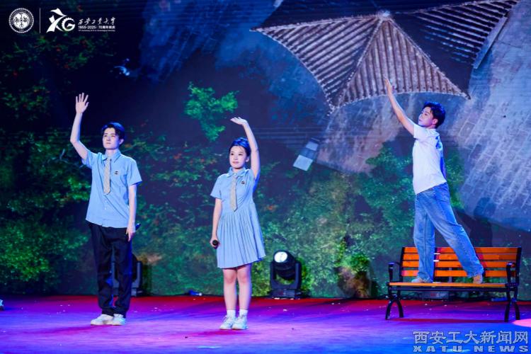 創意表演《時光禮贊》中,大學生、離退休教師、附屬小學一同展示了一代代西安工大人,踐行“敦德勵學,知行相長”的校訓,書寫著教育強國、科技報國的精彩華章。