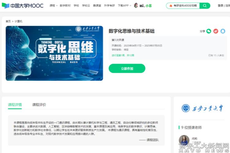(本網訊)近日,我校首門人工智能通識課“數字化思維與技術基礎”在中國大學MOOC平臺建設完成,面向全國首次開課運行,標志著我校人工智能課程鏈建設取得階段性成果。