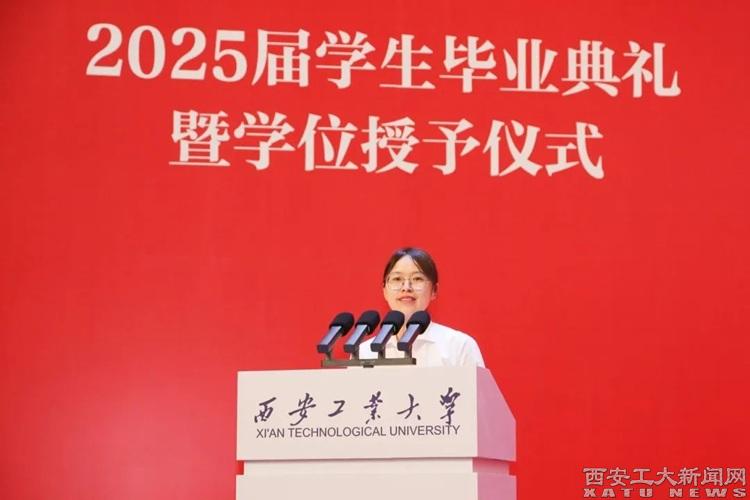 本科畢業(yè)生代表贠欣欣同學(xué)發(fā)言:未來(lái),無(wú)論是在基層一線踐行服務(wù)初心,還是在科技創(chuàng)新中勇攀高峰,亦或在國(guó)際舞臺(tái)發(fā)出中國(guó)聲音,我們都將以西工精神為帆,以青春使命為舵,既有“會(huì)當(dāng)水擊三千里”的豪邁,更守“一片冰心在玉壺”的純粹,讓青春在時(shí)代的星河中閃耀母校的獨(dú)特光芒。