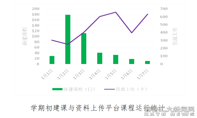 教學平臺統計發現,2022年1月1日至1月7日,全校教師共組建課程2121門次,新建課程423門。