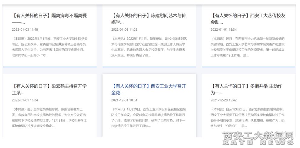 黨委宣傳部開展“有人關懷的日子”“身邊的榜樣”等主題宣傳活動,通過系列小視頻記錄特殊時期的“西安工大”,講“西安工大”抗疫故事,引導師生弘揚愛國主義精神,傳播正能量。