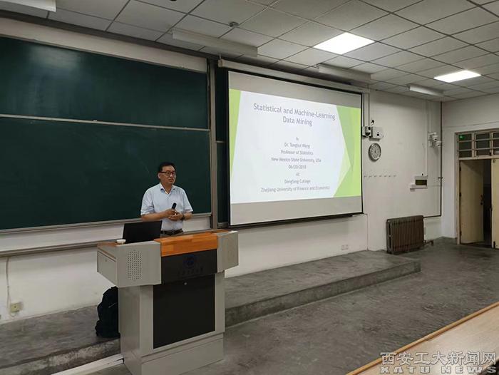 (本網(wǎng)訊)5月25日,基礎學院邀請美國新墨西哥州立大學終身教授、博士生導師、基礎學院客座教授王通會老師,為我校師生作了題為《統(tǒng)計與機器學習數(shù)據(jù)挖掘導論》的學術報告。本次報告由基礎學院副院長馮孝周教授主持。我校基礎學院、新生院的本科生、研究生及部分教師共70余人參加了報告。
