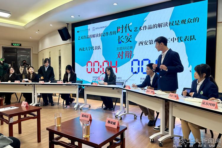 學生通過認真觀展與參與體驗,深刻領會畫家筆觸和時代背景對人物精神風貌的塑造,領略陜西當代中國人物畫的風采與魅力。隨后,進入學術報告廳觀看“AI繪畫是不是藝術”、“藝術作品的解讀權是作者還是觀眾的”兩場藝術類主題辯論賽,并與現場學者、藝術家互動。