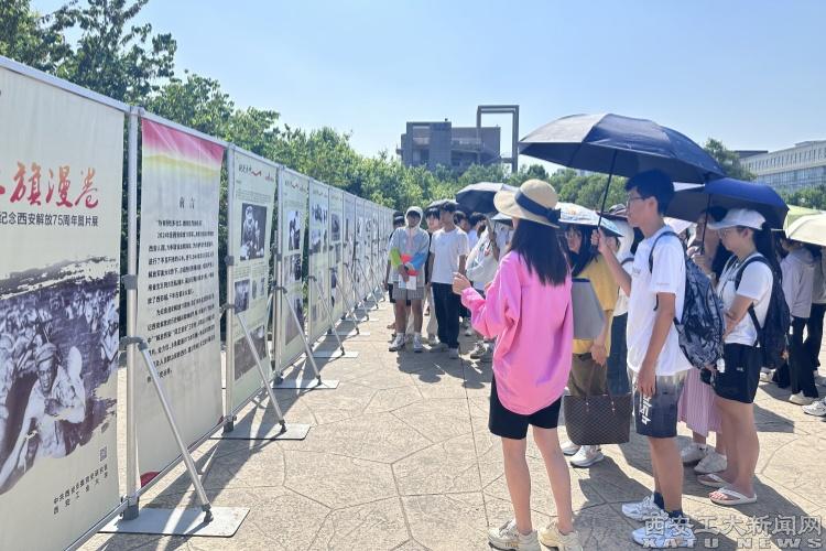 (本網訊)近日,由中共西安市委黨史研究室和我校黨委宣傳部、馬克思主義學院聯合舉辦的“紅旗漫卷——紀念西安解放75周年圖片展”在未央校區布展。馬克思主義學院組織學生進行了現場教學。