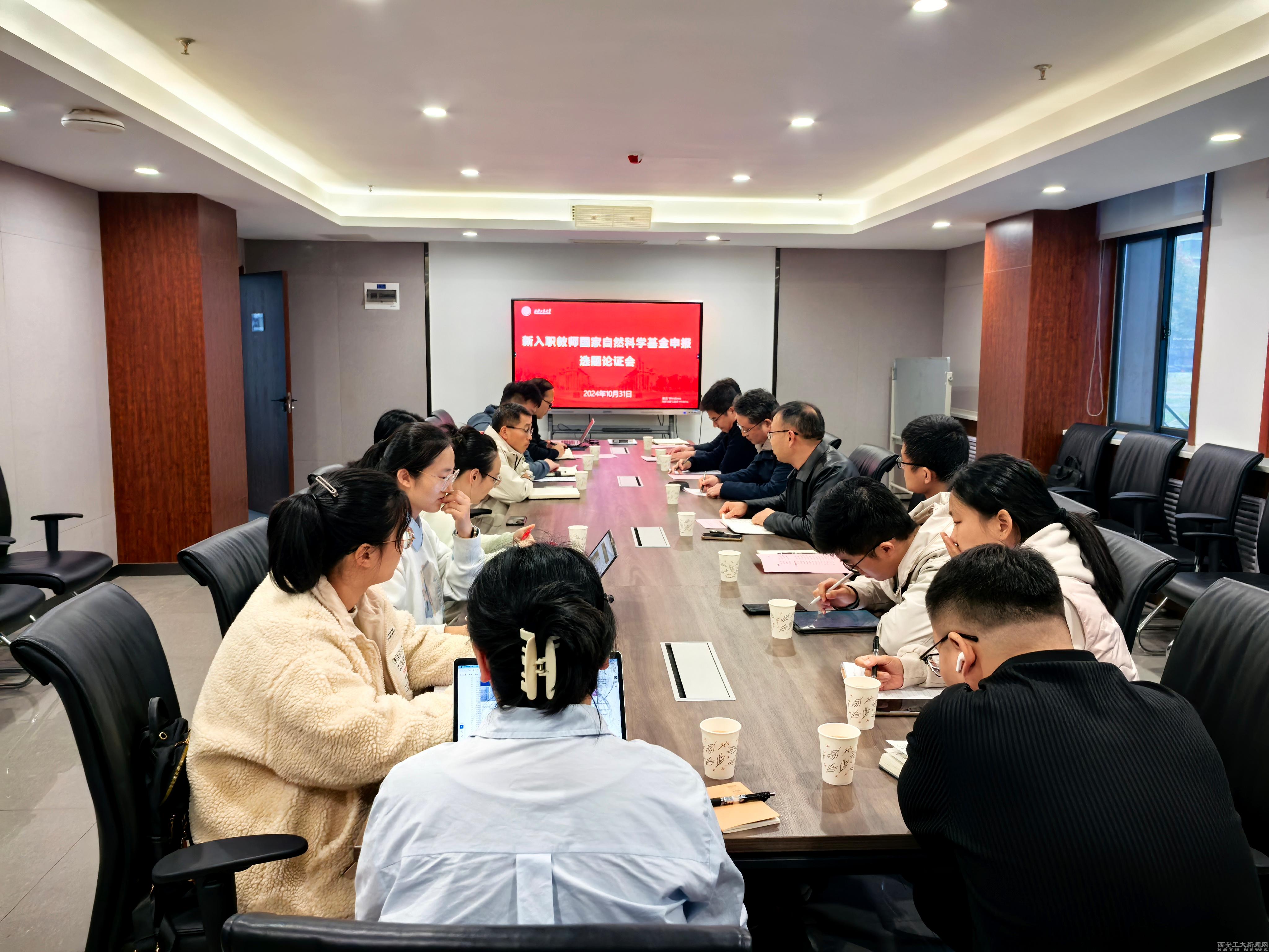 論證會上,新入職教師從項目選題、關鍵科學問題、創新點、研究目標、研究內容、相關研究基礎等方面進行闡述,與會專家結合自身科研經歷和國家自然基金項目評審經驗,分別從選題的需求性、創新性、科學性和合理性等方面,與申報教師進行“多對一”的深入交流,提出建設性的修改建議。