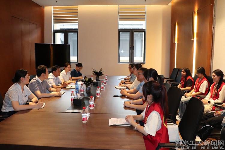 呼嘯首先回顧了“5.18國際博物館日”中國主會場活動的盛況,對在活動中表現出色的西安工業大學志愿者同學給予高度評價,并表示將盡快商討共建科研平臺、實習實踐基地事宜,推動雙方合作向縱深發展。許晨介紹了秦漢館志愿者工作取得的成績,并對西安工業大學長期以來對陜歷博的志愿支持表示感謝。