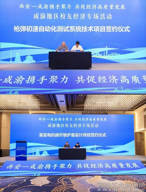 西安工業大學作為西安校友校地創新發展合作聯盟的理事單位,由我校校友總會辦公室積極邀請學校成都校友會、重慶校友會代表參加活動。活動現場進行三個項目簽約儀式,其中,我校倪晉平教授的科研團隊項目“槍彈初速自動化測試系統”、梁艷峰教授的科研團隊項目“某發電機碳纖維護套設計”分別進行現場簽約。