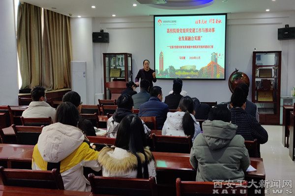 (本網(wǎng)訊)12月2日,材化學(xué)院特邀全國三全育人試點(diǎn)院系項(xiàng)目負(fù)責(zé)人、天津理工大學(xué)材料與工程學(xué)院正處級組織員馬紅健教授作報(bào)告,學(xué)院黨委書記呼曉青、副書記張艷霞、黨委委員、青年教師、黨支部書記、輔導(dǎo)員參加了報(bào)告會。