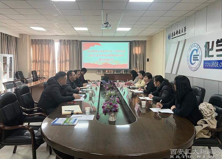(本網訊)12月17日上午,經濟管理學院黨委書記王育曉一行5人前往陜西科技大學化學與化工學院調研交流。陜西科技大學化學與化工學院黨委書記張巖、副書記孫賓濤等人參加座談。