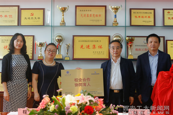 趙紅星及教務處處長閆莉分別與艾默生科技資源(西安)有限公司和艾默生過程控制有限公司簽署了戰略合作協議及校企合作基地協議,并與企業代表為共建實驗室、實踐教學基地、大學生就業實習基地揭牌。