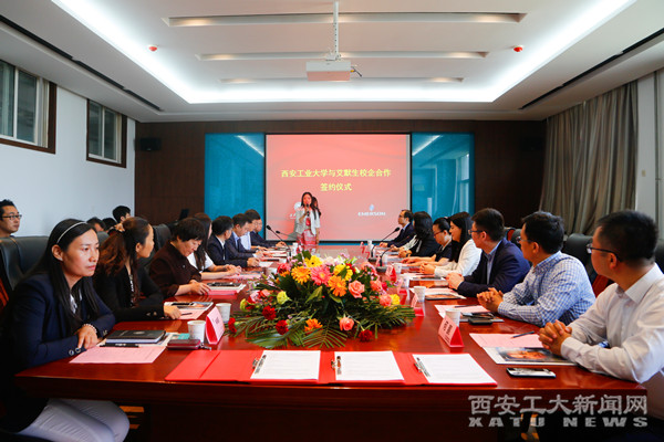(本網訊)近日,我校與艾默生科技資源(西安)有限公司、艾默生過程控制有限公司舉行戰略合作簽約儀式。艾默生科技資源(西安)有限公司總經理陸紅,艾默生過程控制有限公司中國區人力資源高級總監程雁、西北區銷售總監李珊珊,我校副校長趙紅星,教務處處長閆莉、電信學院院長高嵩、電信學院黨委書記張忠等出席了簽約儀式。