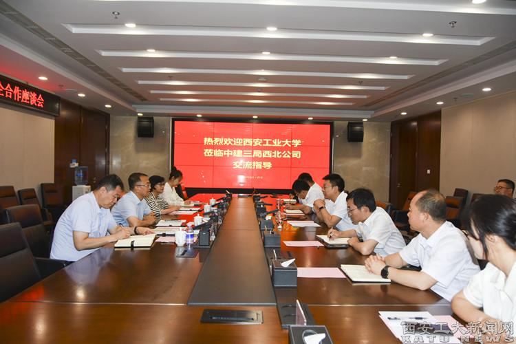 我校建筑工程學院黨委書記劉慧萍、黨委副書記賈建利,中建三局西北公司副總經理白宇、人力資源部經理寧家晟、校友李守富等參與座談。