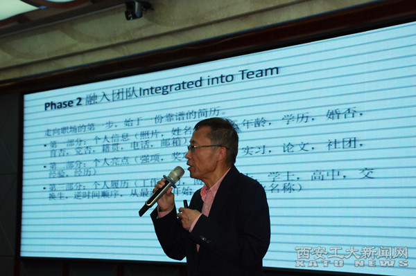李中元以其豐富的職場實踐經驗,首先從新挑戰下企業對員工的特質要求,結合德國工業4.0,深入淺出地分析了大學生如何做好前期各項準備。他從簡歷的填寫到面試的要點,系統地闡述了面試中如何更好地展示自我并盡快融入團隊;最后就如何成為企業不可或缺的人才、未來職場發展路線提出了建議。