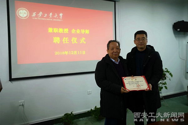 報告會后,副校長任海鵬向李鮮武頒發了西安工業大學西北兵器工業研究院兼職教授聘書以及企業導師聘書。
