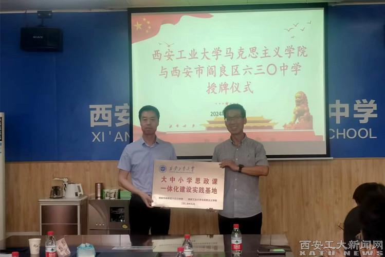在授牌儀式上,梁華平和盧疆共同為馬克思主義學(xué)院在閻良區(qū)六三〇中學(xué)設(shè)立“大中小學(xué)思政課一體化建設(shè)實(shí)踐基地”揭牌。馬克思主義學(xué)院教師黃萌結(jié)合學(xué)校軍工特色為七年級(jí)學(xué)生們做了題為《軍工史上的傳奇英雄--吳運(yùn)鐸》的專題報(bào)告,獲得了同學(xué)們陣陣掌聲。