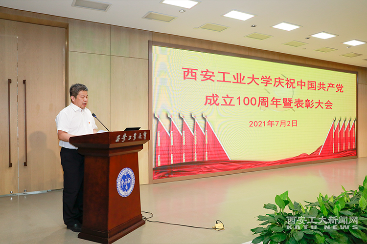 黨委書記劉衛國代表校黨委,向全校廣大黨員致以節日的誠摯問候,向關心支持學校黨建工作的廣大師生員工表示衷心感謝,向受表彰的集體和個人表示熱烈祝賀。隨后,劉衛國以《學百年黨史 傳西工精神——在黨史學習教育中推進高水平大學建設》為題講了專題黨課。他結合習近平總書記在慶祝中國共產黨成立一百周年大會上的講話精神,主要從中國共產黨艱難誕生、曲折前行 、銳意進取、聚力發展四個部分,回顧了黨的歷史、學校的歷史,重點闡述了“西工精神”的內涵,分享了學習感悟和親身體會。同時,他就深入學習習近平總書記在慶祝中國共產黨成立100周年大會上的講話精神,深入開展黨史學習教育,加強黨對學校工作的領導提出了具體要求。