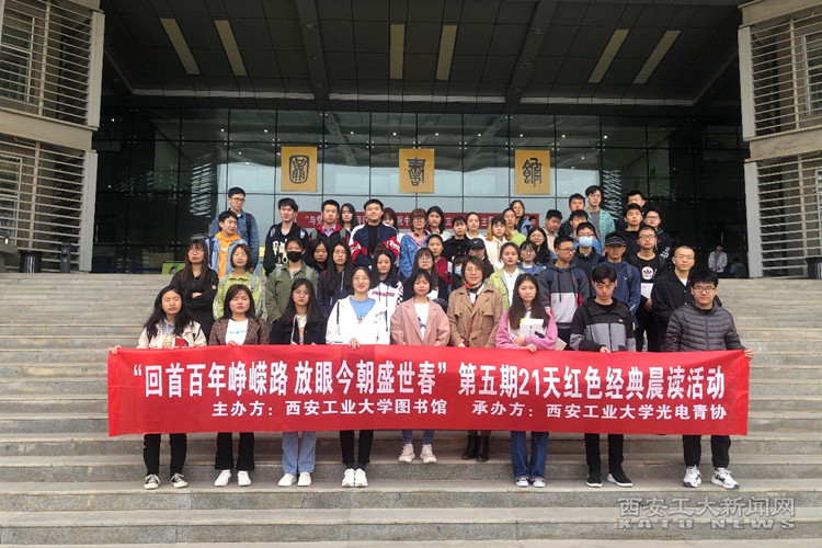 (本網訊)百年奮斗路,啟航新征程。為慶祝中國共產黨百年華誕,積極開展黨史學習教育,4月6日“回首百年崢嶸路 放眼今朝盛世春”第五期21天紅色經典主題晨讀活動在圖書館門前正式啟動,此次晨讀活動由圖書館主辦,光電青協承辦,約50多名學生參加。