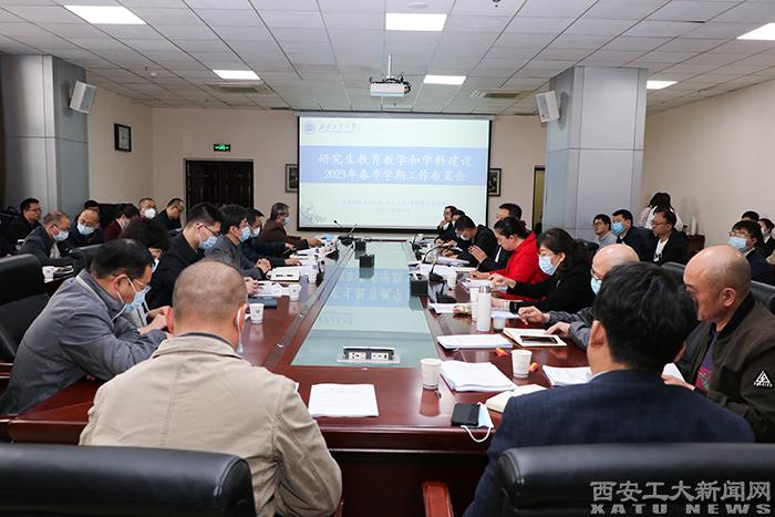 (本網訊)3月9日上午,西安工業大學2023年春季學期研究生教育教學和學科建設工作布置會在未央校區圖書館三樓會議室召開,副校長張群,各學院書記、院長、主管研究生教育的副院長、研究生秘書、研究生輔導員,研究生院全體人員參加了會議。會議由黨委研究生工作部(研究生院、學科建設辦公室)部長(院長、主任)蘇兵主持。