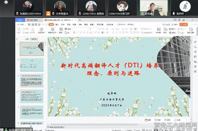 (本網訊)4月7日,文學院特邀廣東外語外貿大學趙軍峰教授作題為《新時代高端翻譯人才(DTI)培養:理念、原則和進路》的線上學術報告,文學院副院長吳妍妍主持。