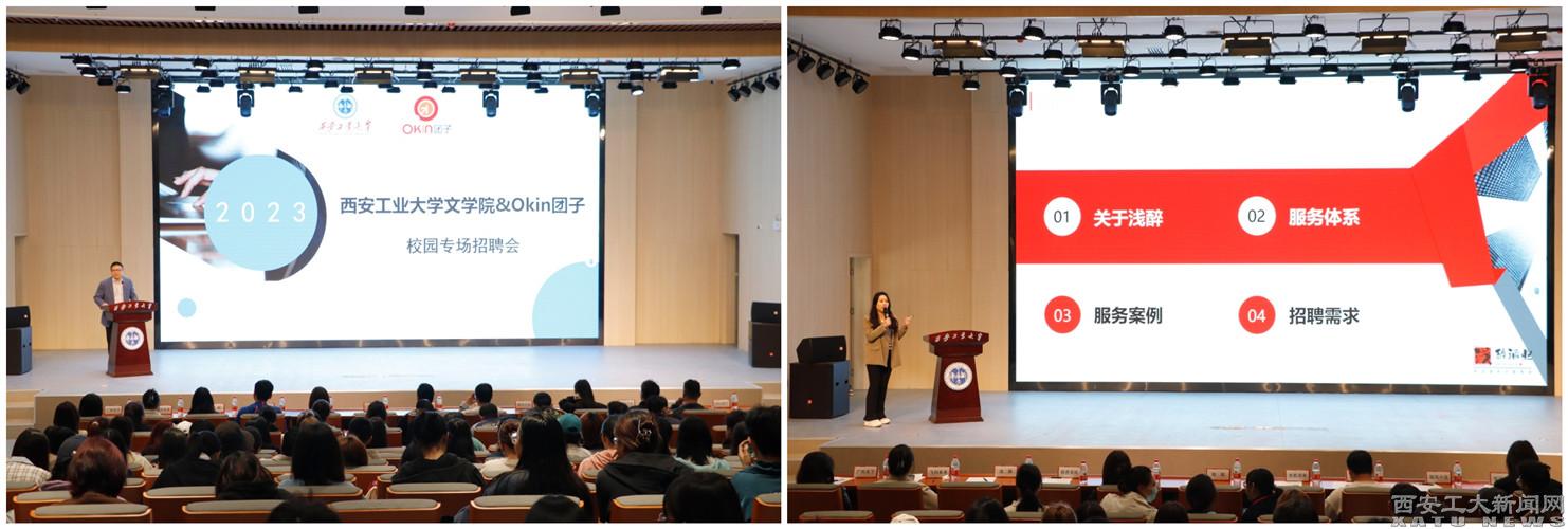 程建虎首先致歡迎詞,感謝團子公司對文學院就業工作的支持。隨后,團子公司總經理張策做了簡短而精彩的“文創微課”分享,既有對行業趨勢的權威解讀,又有最新的文創信息推介,讓在場學生享用了一場文創“盛筵”。西安旭航數字科技有限公司、西安輕舟文化傳播有限公司、西安曲江品高企業文化傳播有限公司、西安光影流年文化傳媒有限公司、西安月牙影視文化傳播有限公司、西安飛向未來智能教育科技有限公司、陜西礎潤光合傳媒科技有限責任公司、陜西淺醉酒業有限公司、西安鋼蹦文化傳媒有限公司等企業依次進行宣講,通過宣傳視頻播放及PPT演示,詳細介紹了公司概況及未來發展前景、崗位人員需求、職業發展方向以及選擇該公司的理由等,讓畢業生們了解西安文創,明確自己的就業方向。年輕的企業家還分享了自己的創業經驗,引導和鼓勵在場學子突破自我,勇敢追夢。