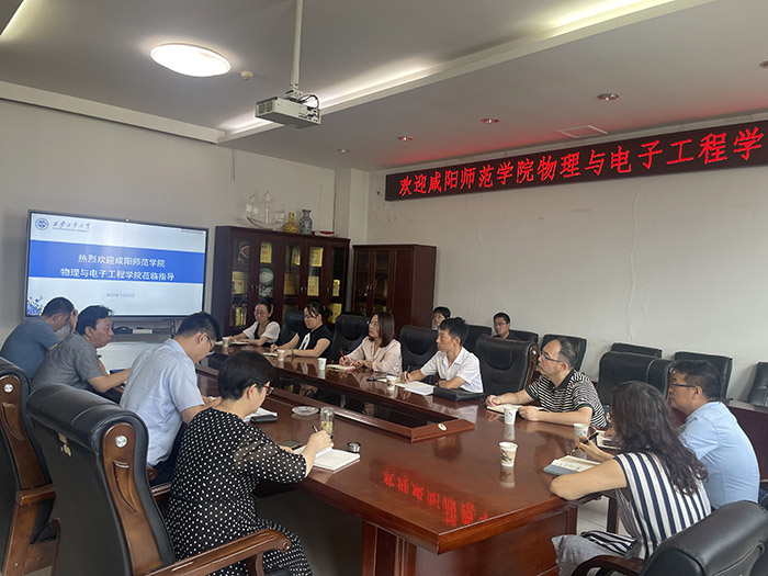 (本網(wǎng)訊)7月19日上午,咸陽師范學(xué)院物理與電子工程學(xué)院袁月副書記(主持工作)、 何東山院長一行來我校光電工程學(xué)院調(diào)研交流。雙方圍繞黨建工作、學(xué)科建設(shè)、實(shí)驗(yàn)室管理、人才培養(yǎng)、學(xué)生管理等內(nèi)容進(jìn)行了交流。光電工程學(xué)院全體院領(lǐng)導(dǎo)、部門負(fù)責(zé)人參加座談會。