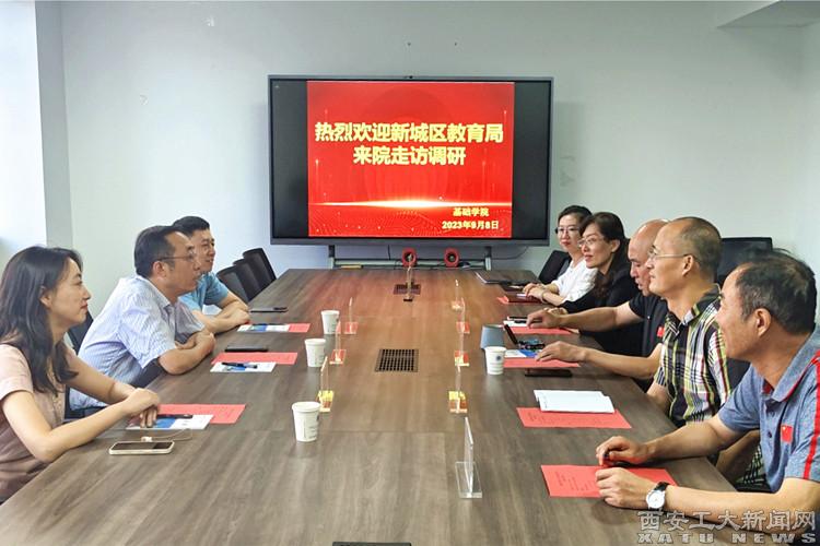 (本網訊)近日,新城區教育局招生辦公室主任劉彬一行來基礎學院進行走訪調研。基礎學院院長張建生、副院長馮孝周、黨委委員崔立根參會。會議由學院黨委書記張英主持。