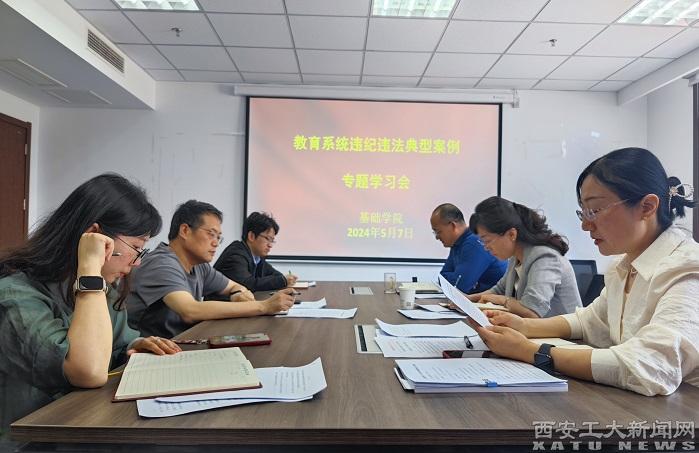(本網訊)5月7日,基礎學院組織召開教育系統違紀違法典型案例專題學習會,會議由學院黨委書記張英主持。