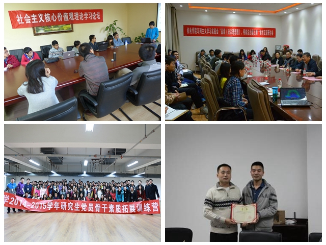 以2014年為例,全年開(kāi)展各種形式的教育活動(dòng)346次,參與積極分子和學(xué)生黨員28313人次;黨委學(xué)生工作部通過(guò)組織學(xué)生黨課的方式,邀請(qǐng)高水平專(zhuān)家報(bào)告8場(chǎng),同時(shí)配合網(wǎng)絡(luò)考試、撰寫(xiě)黨課論文的形式,全年共培訓(xùn)2245名積極分子。通過(guò)對(duì)學(xué)生黨員和積極分子群體的全覆蓋式理論培訓(xùn),有效的提升了該群體的思想理論素質(zhì),在“培育和踐行社會(huì)主義核心價(jià)值觀(guān)”主題征文活動(dòng)中,10篇文章在北京市的評(píng)選中獲獎(jiǎng)。